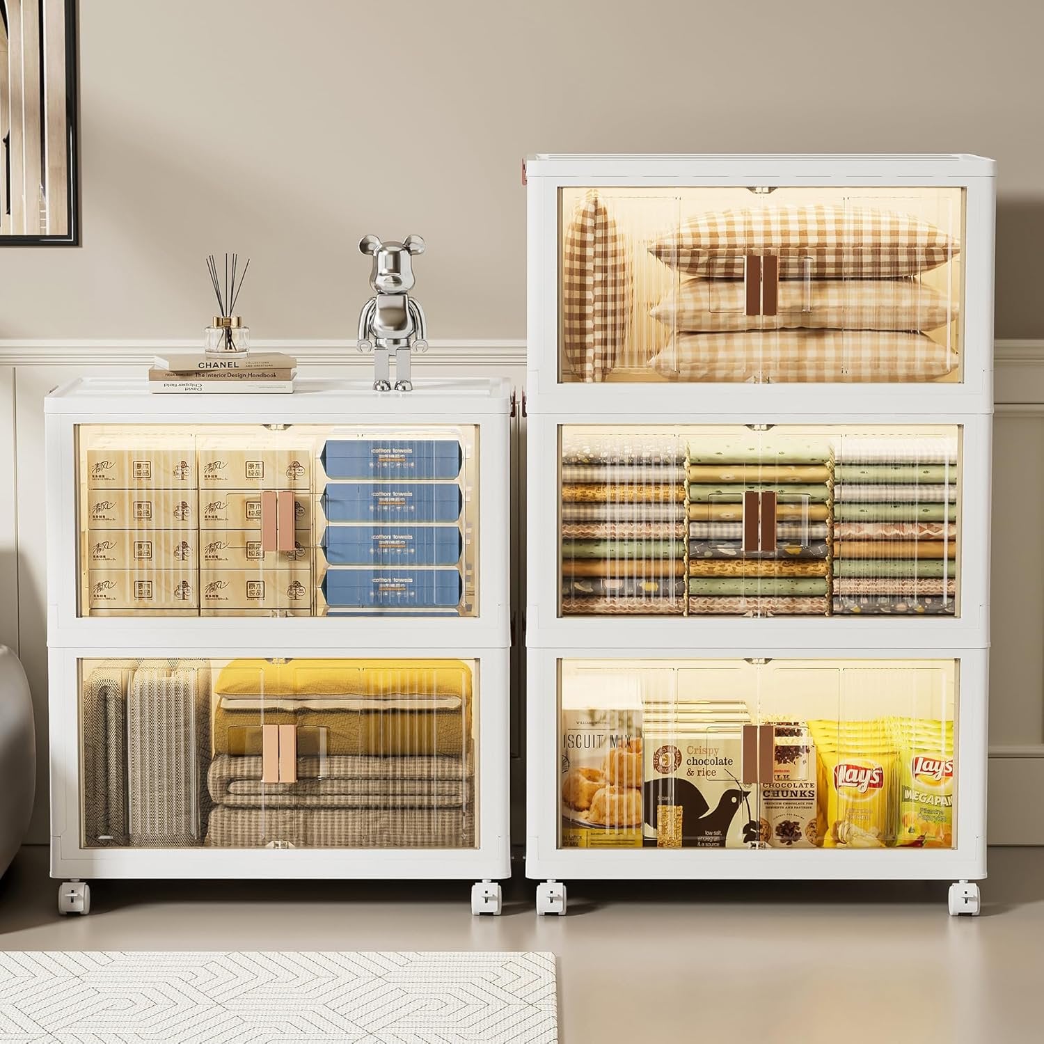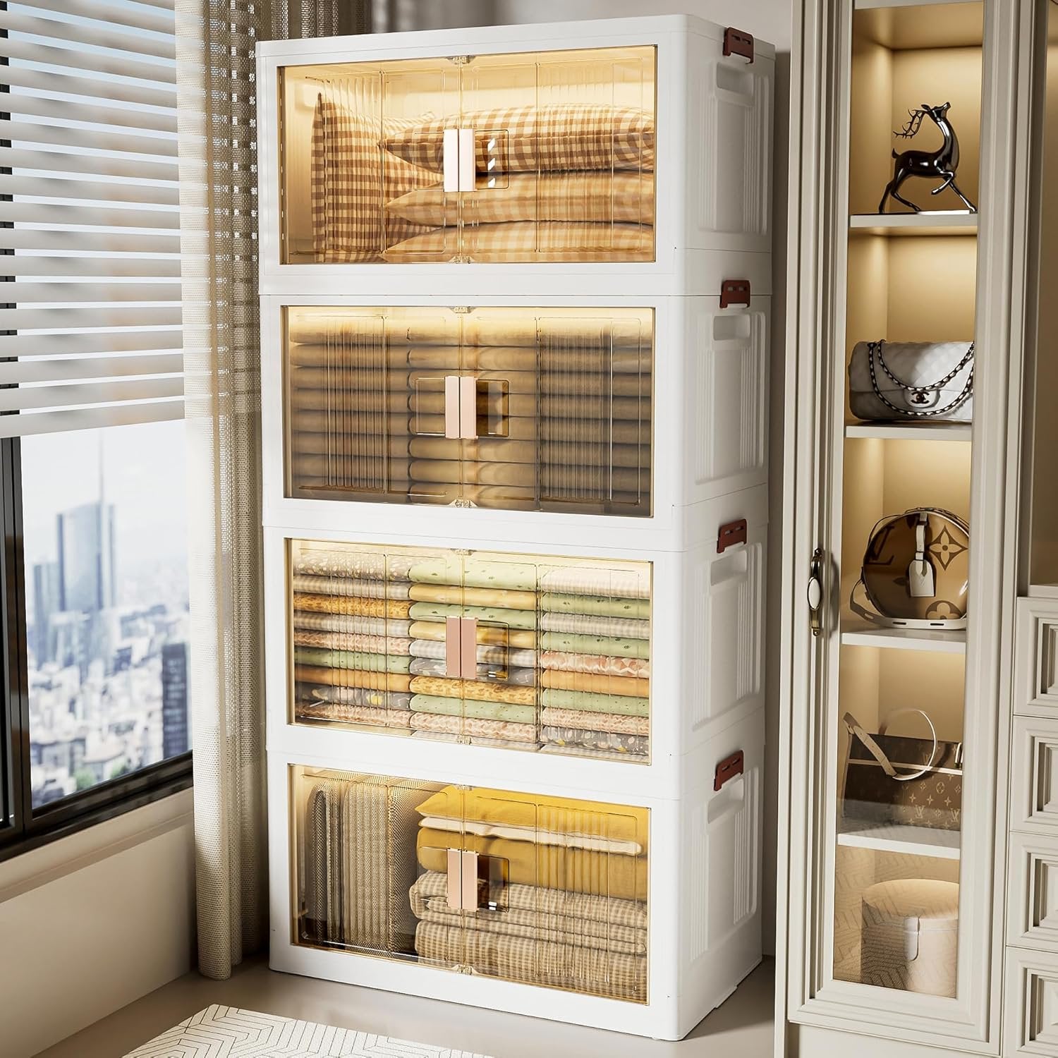 • STURDY & DURABLE MATERIAL - Made of premium PP material, the folding storage bins for clothes are more durable and sturdier than other plastic storage cabinet with doors, it has crafted sides, better joints and tougher panels. Not easy to damage, once purchase for a long term use.
